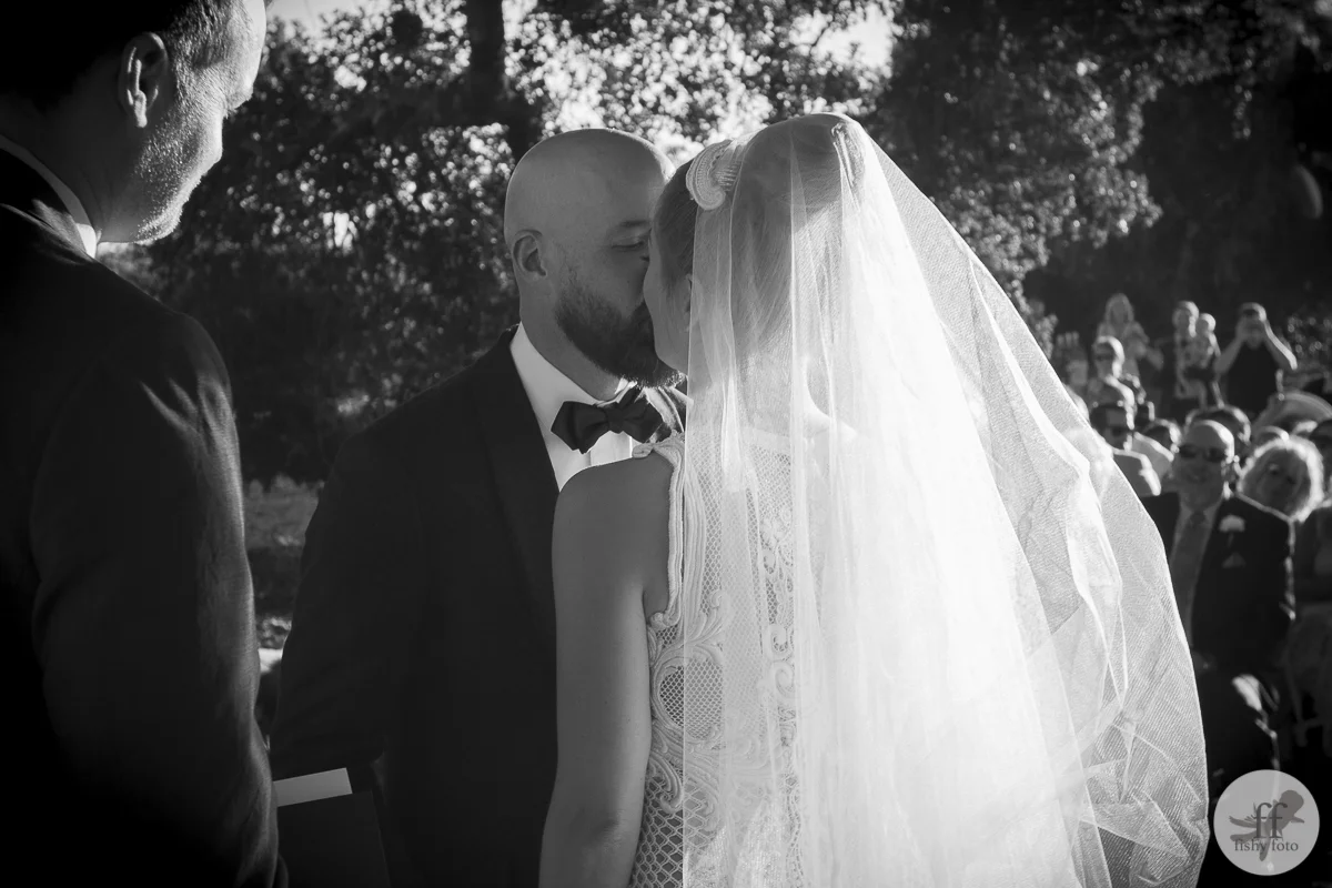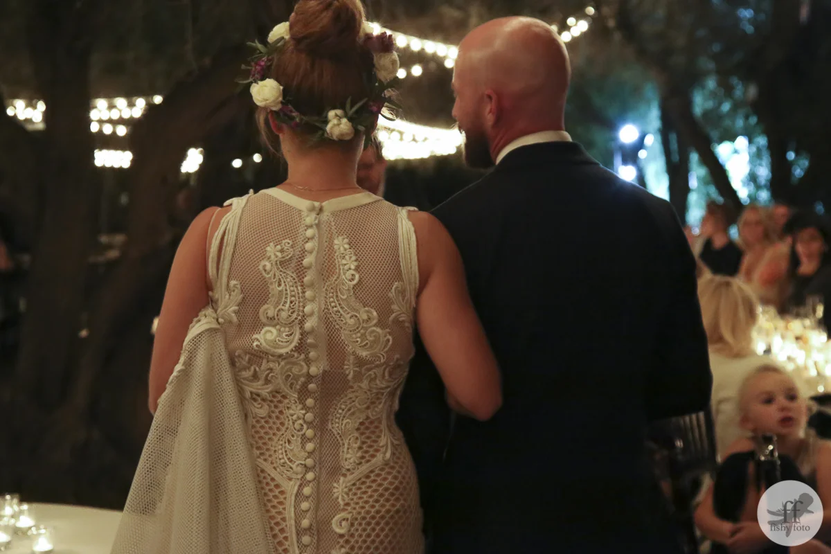 The ceremony was simple and beautiful, held right at dusk. With the guests holding parasols, the bride came down the aisle in a stunning dress (The groom snuck in a photo with his film camera and then tossed it to me for safekeeping). Erika's father gave over his daughter to her husband-to-be and the minister began. Let me tell you: the emotion of the moment was felt by all present. The handwritten vows had the crowd in tears (myself included).