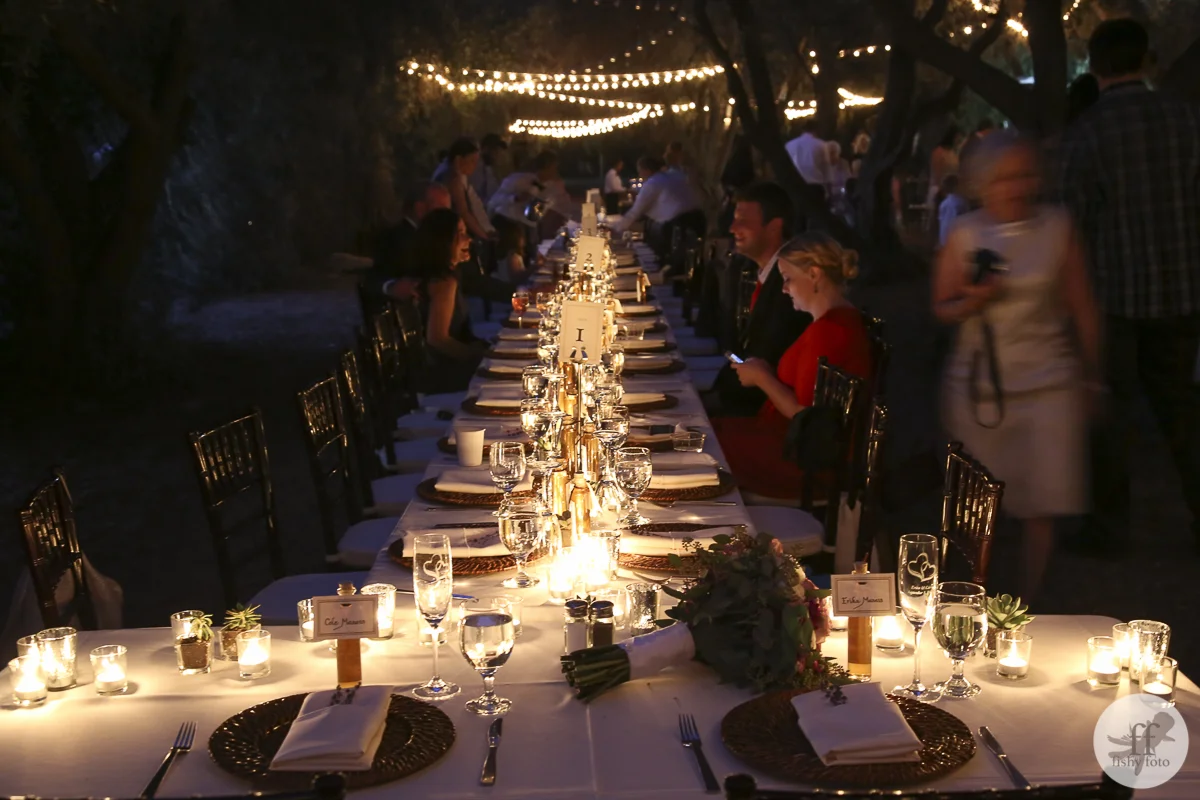 With all the festivities being held on a holiday weekend, I drove out early to have enough time to enjoy the sights of the location. After having taken in all of the venue, I set up the photo booth, and started the pre-wedding shots. The bride had a suite in the middle of the forest, while the groom had a game room with a pool table. In the middle of the olive trees were two long tables set up for the reception, each with a guest's name tied around a bottle of lavender syrup fresh from the Highland Springs Resort.